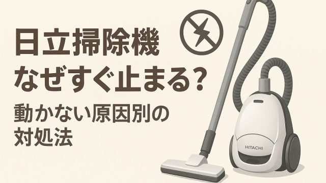 日立 日立掃除機がすぐ止まるのはなぜ?動かない原因別の対処法や注意点 日立掃除機がすぐ止まる・動かない原因にお困りの方へ。バッテリー劣化や保護装置作動、吸い込みが弱いなどの症状を対処法とともに詳しく解説します。日立掃除機がすぐ止まる症状や動かない問題になる方が知りたい電源が入らないケースやリコール情報、修理・買い替えの判断基準まで網羅しています。 日立